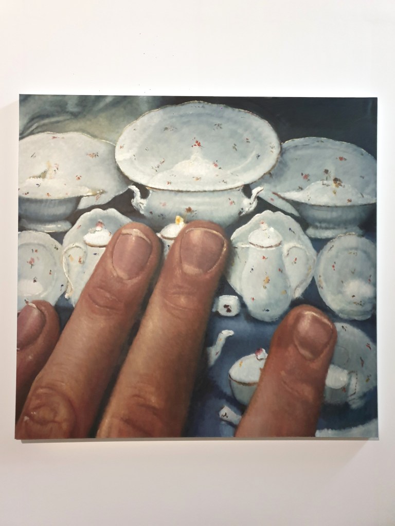 Wood’s paintings create an intimate dialogue, offering a sort of connection between the audience and the painter herself. Each canvas is a narrative of everyday objects, realized in a striking realistic manner. The meticulous details challenge the boundary between the tangible and the artistic, with a realism almost photographic that engages with the viewer. At the same time, the viewer is encouraged to come closer to the paintings, where the brush strokes reveal the artist’s hand.