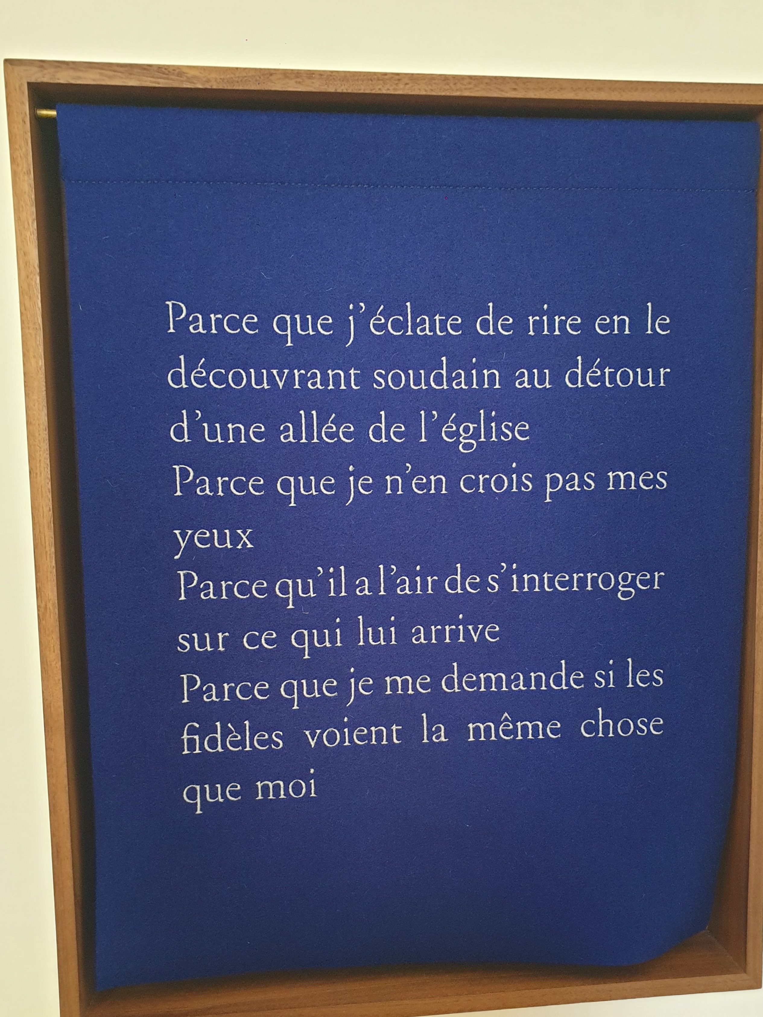 ** “Because I burst out laughing when I discover him in one of the church’s alleys. Because I can’t believe my eyes. Because he seems to be asking himself what’s happening to him. Because I ask myself if the faithful see what I see”