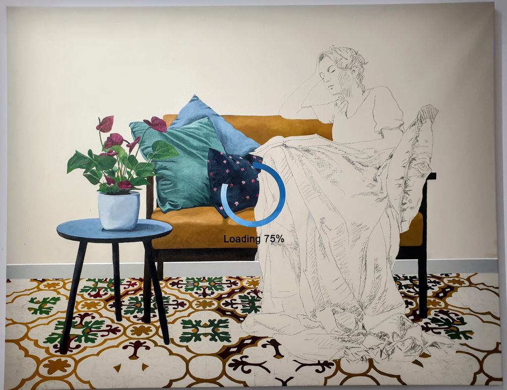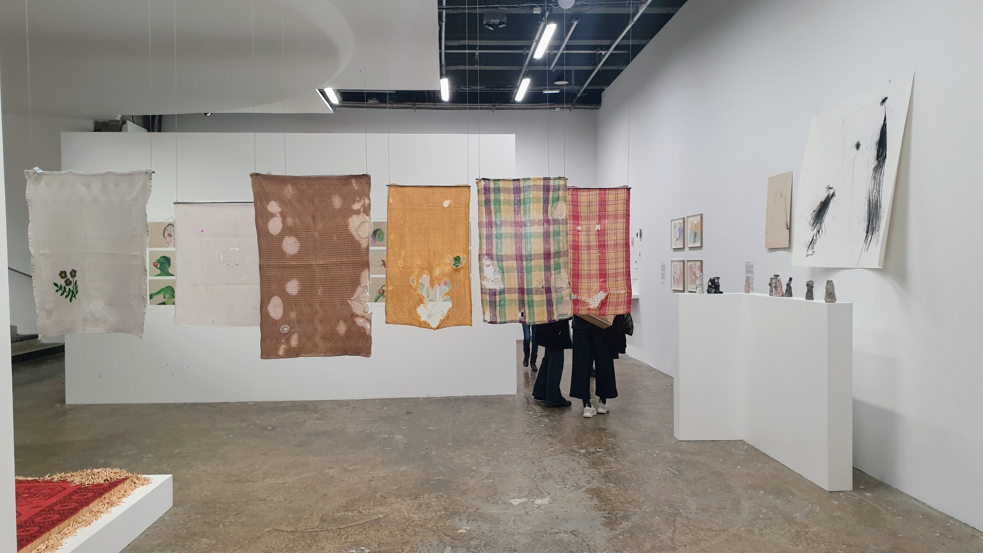 From Pakistan, Palestine, Afghanistan, Syria and other countries, the exhibition sheds light on the experiences of artists from various countries. Despite their different stories and artistic approaches, they share a common thread: the anguish of feeling here and there, the drect or indirect experience of being forced to leave their homeland. Through mediums such as works on paper, acrylic, embroidery, painting on cloth, and photography, each artist expresses themselves uniquely. Yet, what unites these diverse works is their shared mission: to tell their story and communicate a strong message, sensibilizing people.