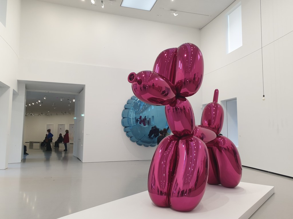 Some pieces question even the definition of art, following the tradition established from Duchamp onwards. Duchamp himself is even represented in the exhibition, through the monumental installation by de Sturtevant that reproposes the display that Duchamp presented at the International Exhibition of Surrealism in 1938. Artists question the act of art-making, elevating everyday objects to the status of art and prompting reflections on contemporary society. In this section, it pops out the room featuring Baloon Dog (Magenta) by Jeff Koons, that immediately catalize the attention with the disproportion between its majestic dimensions and the childish subject matter. Similarly, The Fragile Truth by Damien Hirst by simply presenting shelves filled with hundreds of medications, encourages a reflection on human’s pursuit of eternal life through pharmaceutical advancements, a pointless battle to fight what’s inevitable.