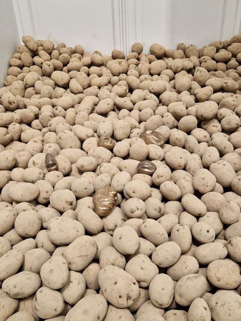 Iconic works like Pistoletto’s Venere degli stracci and Fabro’s inverted installations of the Italian boot are immediately recognizable. Alongside these, lesser-known archival treasures like Penone’s Patate offer insights into the early stages of Arte Povera. These works encapsulate the movement’s exploration of the interdependence between humanity and nature, a harmonious blend which in these artworks is translated by the use of industrial material and the organic.