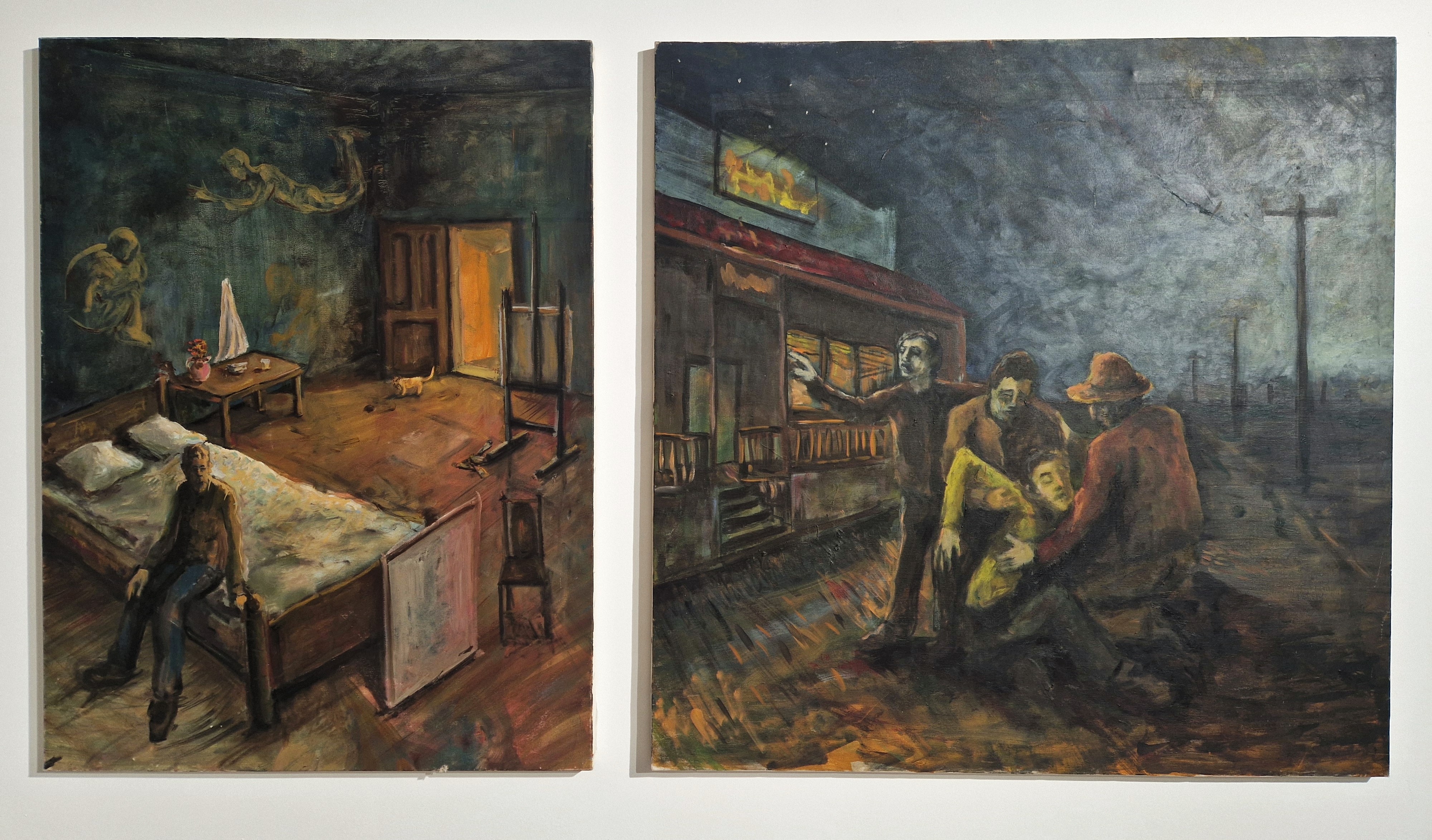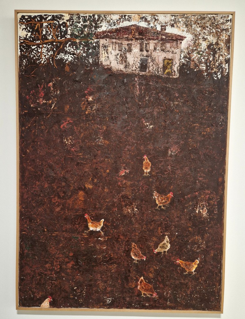 Some works, on the other hand, delve into themes of intimacy and introspection. Blerta Hashani draws inspiration from the landscapes surrounding her countryside home, crafting pieces that feel both deeply personal and universally resonant. By blending minimalism with elements of classical landscape painting, she traces the essence of a place without depicting it literally, leaving space for the viewer’s imagination. Similarly, Ermir Zhinipotoku’s work explores existential themes, reflecting a sense of detachment from the modern world. His paintings bridge personal narratives and the universal, inviting broader reflections on human experience.