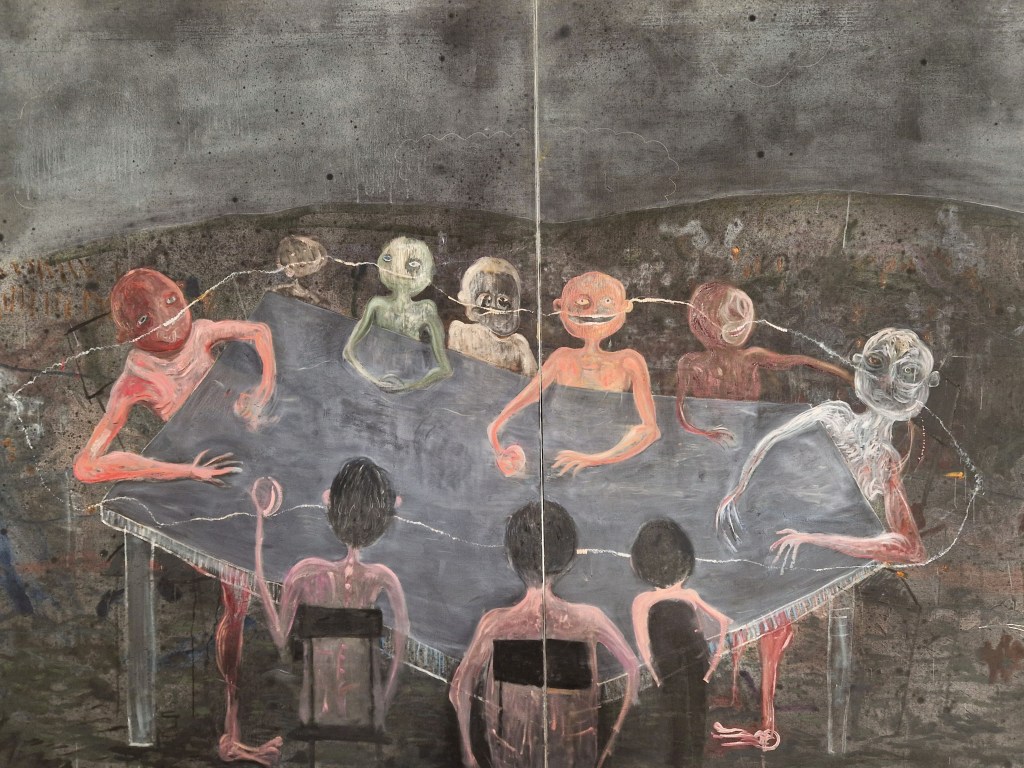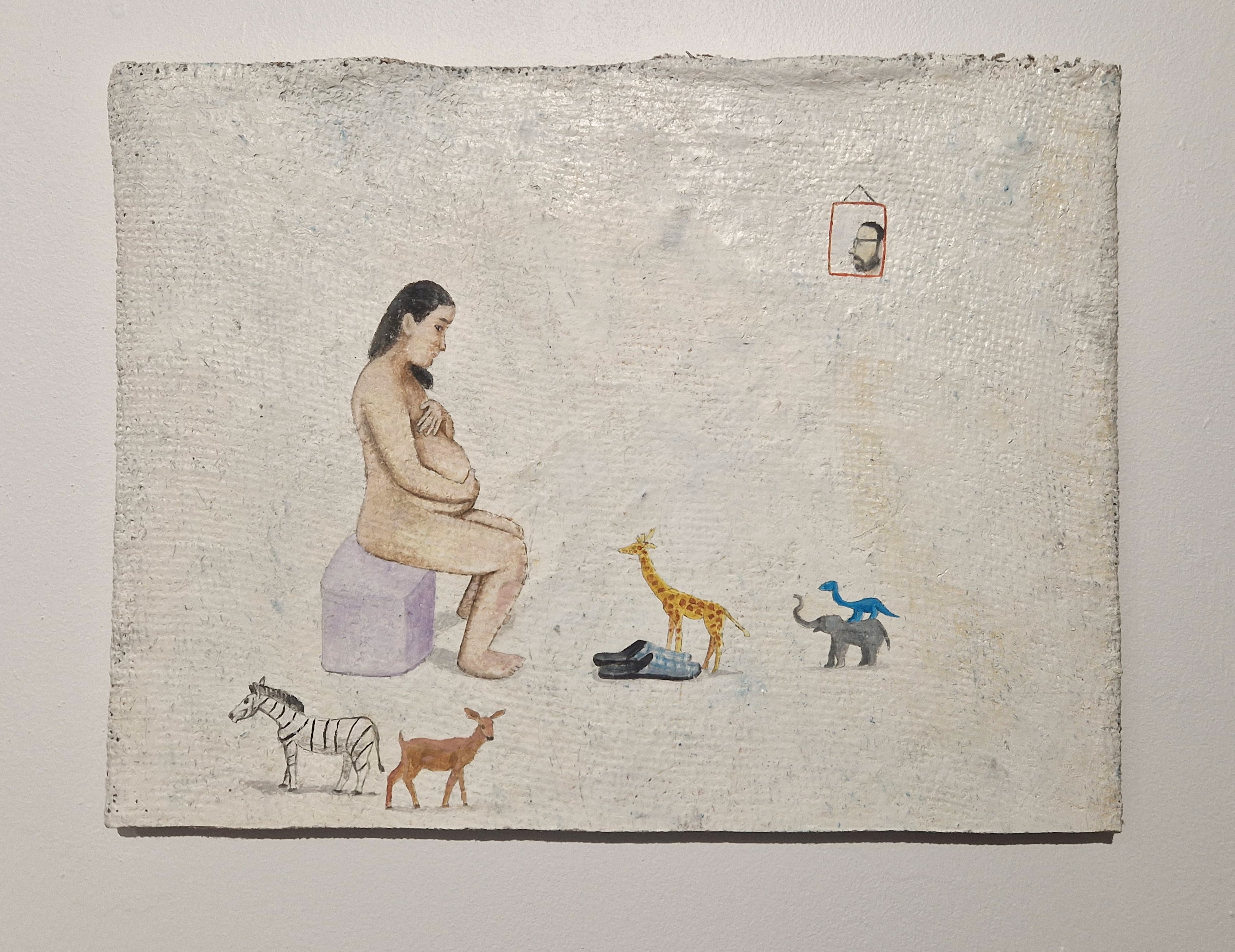 Other artists directly address Kosova’s socio-political context, such as Brilant Milazimi, whose work blends personal narrative with dreamlike imagery. Through distorted and exaggerated figures, Milazimi’s paintings reveal the emotional scars of a society navigating between tradition and change. A forced smile, for example, becomes a metaphor for the underlying tensions and unspoken struggles of everyday life. Her work captures both resilience and hope, and reflect on the country’s past traumas.