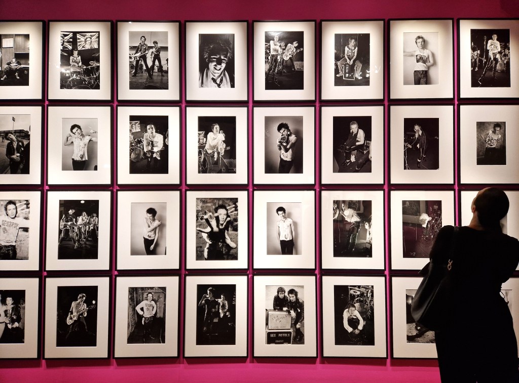 The second floor of the exhibition shifts to another groundbreaking moment in Morris’s career—his work with the punk scene. Thanks to his reputation from working with Marley, Morris quickly became a sought-after music photographer. The Sex Pistols soon approached him to shoot promotional portraits for their album. Once again, Morris formed a close bond with his subjects, capturing the raw energy of the punk movement from the inside. Among the most legendary images on display are those from the Pistols’ notorious Thames River cruise in 1977, staged as a rebellious counter-event to the Queen’s Silver Jubilee. Through his work with the Sex Pistols, Morris cemented his status as one of the most influential music photographers in Britain.