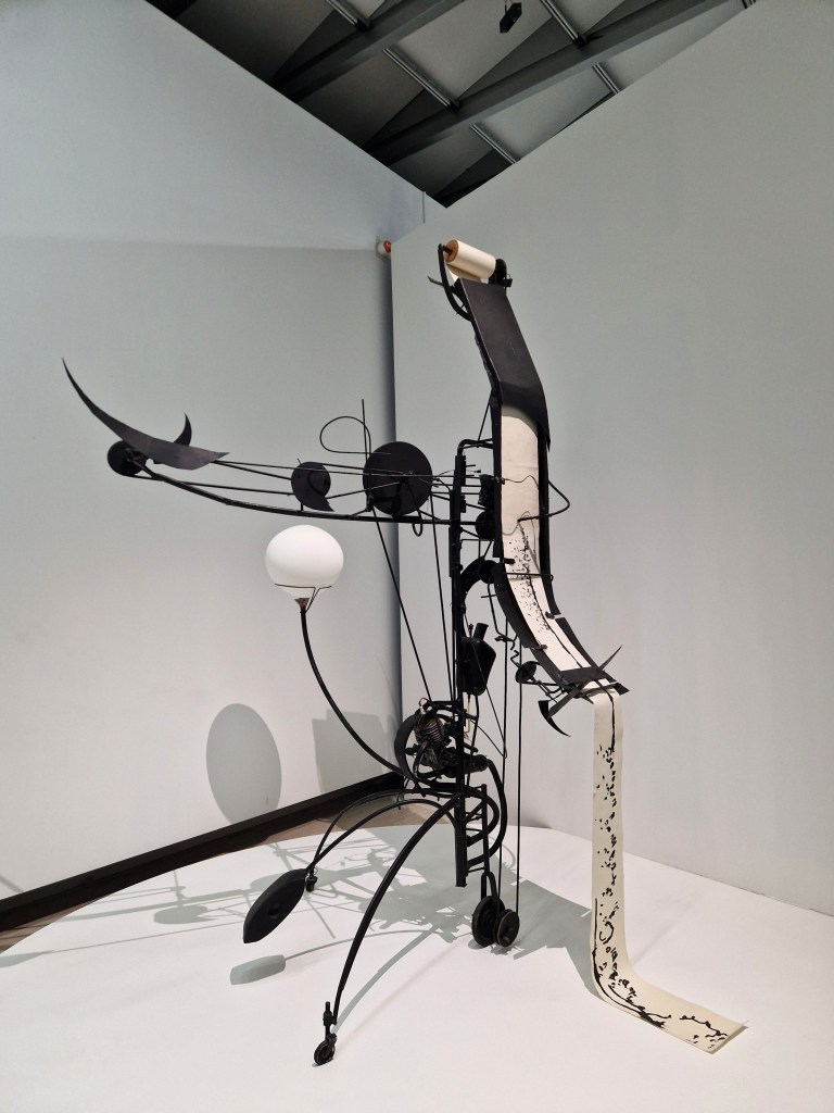 The exhibition unfolds across a structure that is both chronological and thematic, allowing each protagonist to emerge distinctly while revealing the deep interconnections between their paths. It opens with the encounter between Pontus Hulten and Jean Tinguely. Hulten- who at the time still nurtured artistic ambitions – was captivated by Tinguely’s radical use of movement and mechanical structures. This meeting convinced him to fully embrace curating rather than pursue an artistic practice himself. A few years later, in 1956, Tinguely met Niki de Saint Phalle in Paris; from 1960 onward, the two became both artistic collaborators and partners in life. It was Tinguely who introduced Saint Phalle to Hulten, sealing a long-lasting triangulation of friendship, exchange and creative complicity.