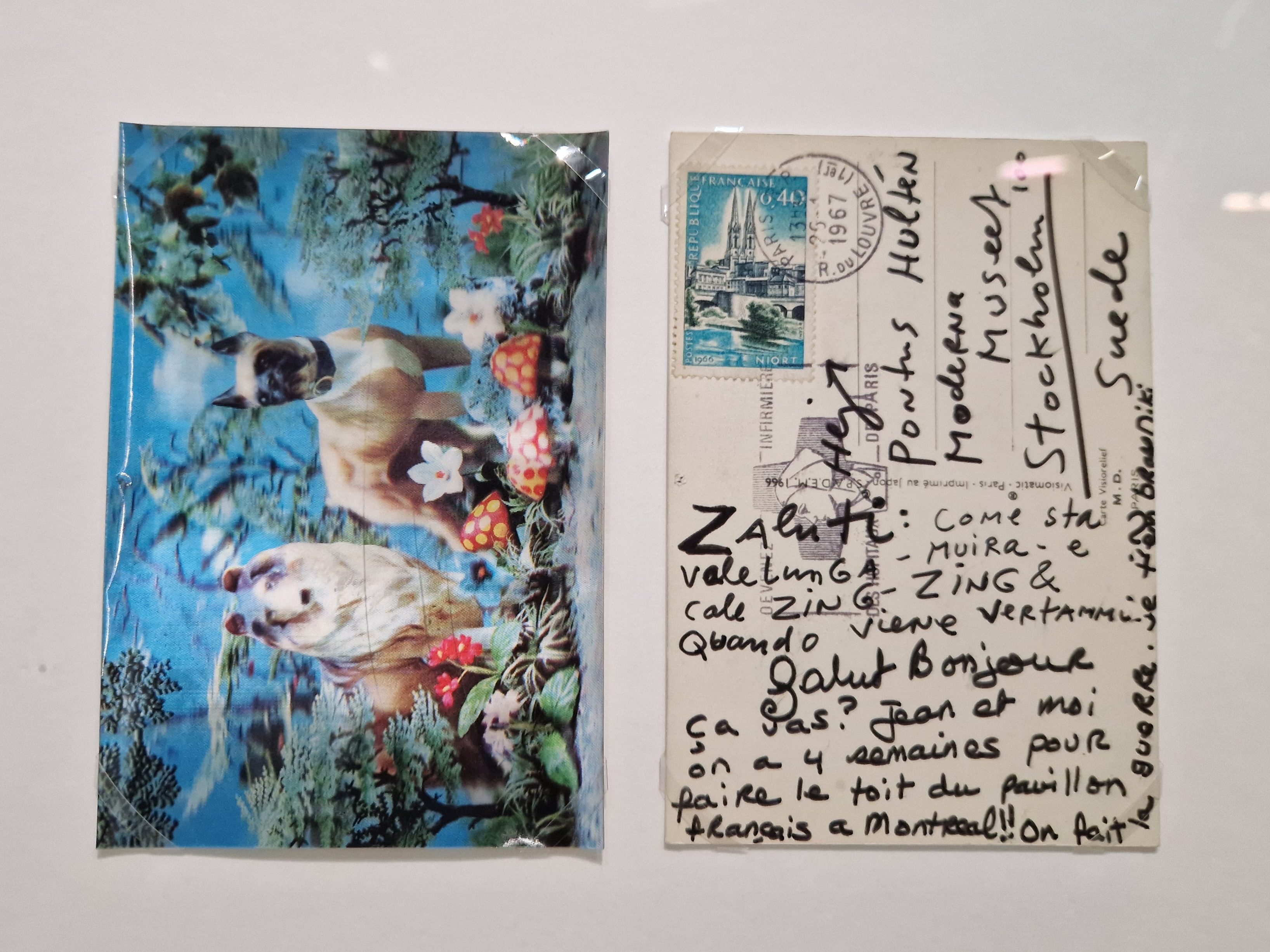 One of the most compelling aspects of the exhibition is its attention to Hulten’s curatorial career, an unusual but essential perspective, considering the extent to which his institutional work directly influenced the visibility of Tinguely and Saint Phalle. Appointed in the late 1950s to the Nationalmuseum in Stockholm, Hulten developed what would become the Moderna Museet. Bold and forward-looking, he enriched the collection with contemporary works and maintained a dense correspondence with both artists, many of whose letters and postcards are displayed here.