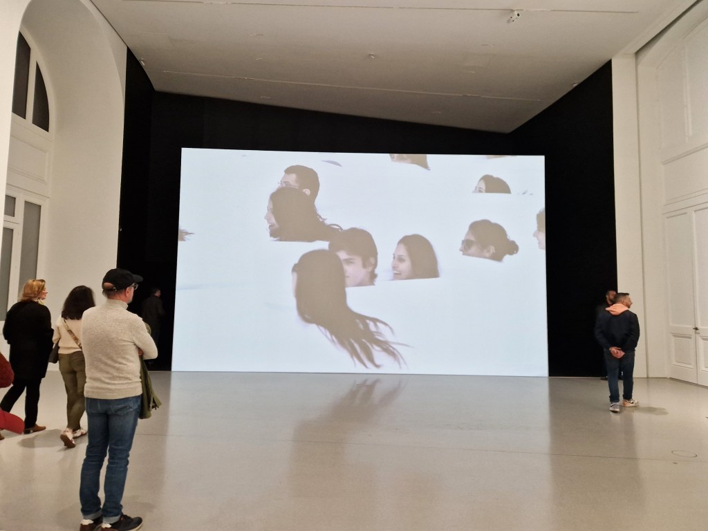 Other rooms function as monographic spaces, such as the section dedicated to Brazilian artist Lygia Pape (1927–2004). Her work bridges Minimalism, Conceptual Art, and performance, and she was a key figure of the Neo-Concrete movement, which understood the artwork as a living entity activated by the viewer. Her installation Ttéia 1, C (2003), here reimagined for the Bourse de Commerce, exemplifies this approach: golden threads catch and reflect light, creating an immersive environment that encourages contemplation and spatial awareness. A selection of her films, books, and poems further enriches this presentation, offering what amounts to a first retrospective introduction of her work in France.
