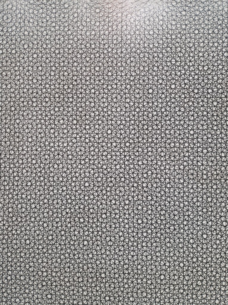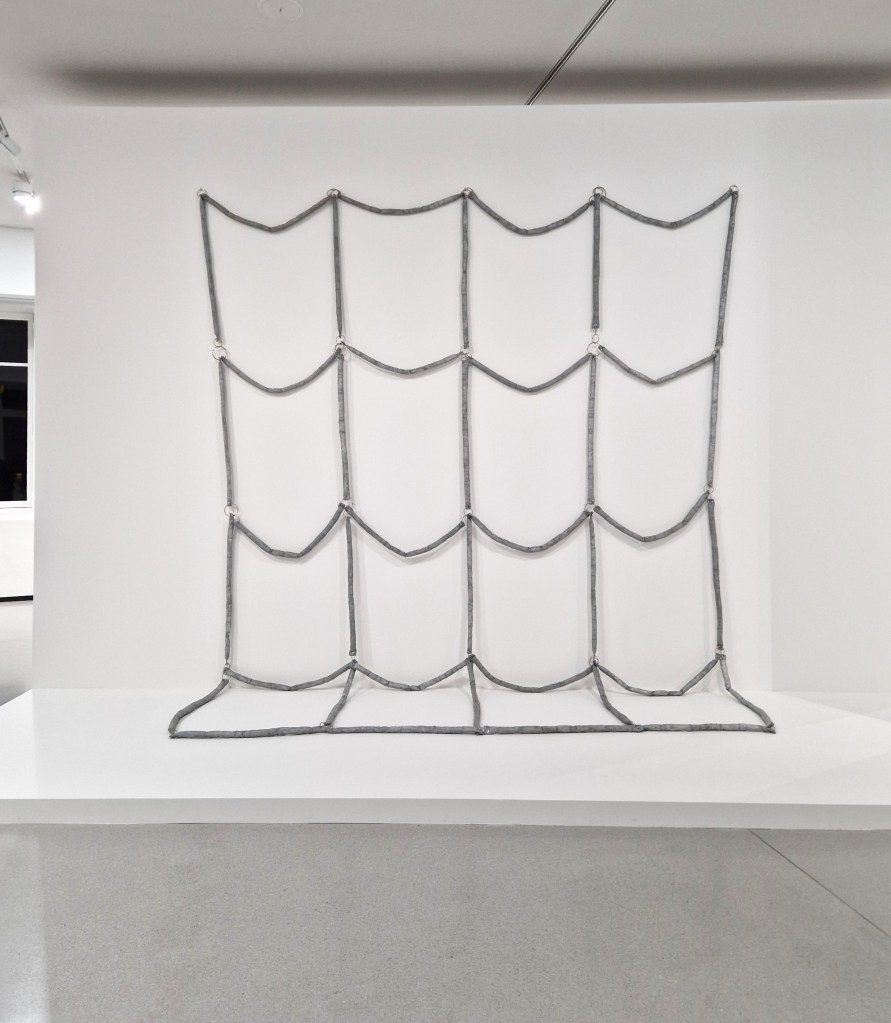 On the second floor, additional sections focus on notions such as balance, surface, grids, and monochrome. Across these rooms, the emphasis lies on the relationship between the artwork and its surrounding space: how a piece occupies a given context, how it activates the environment, and how perception shifts according to spatial conditions. Materiality plays a central role, particularly in works that integrate organic elements within rigid geometric forms, bringing natural materials into dialogue with anthropic and industrial shapes.