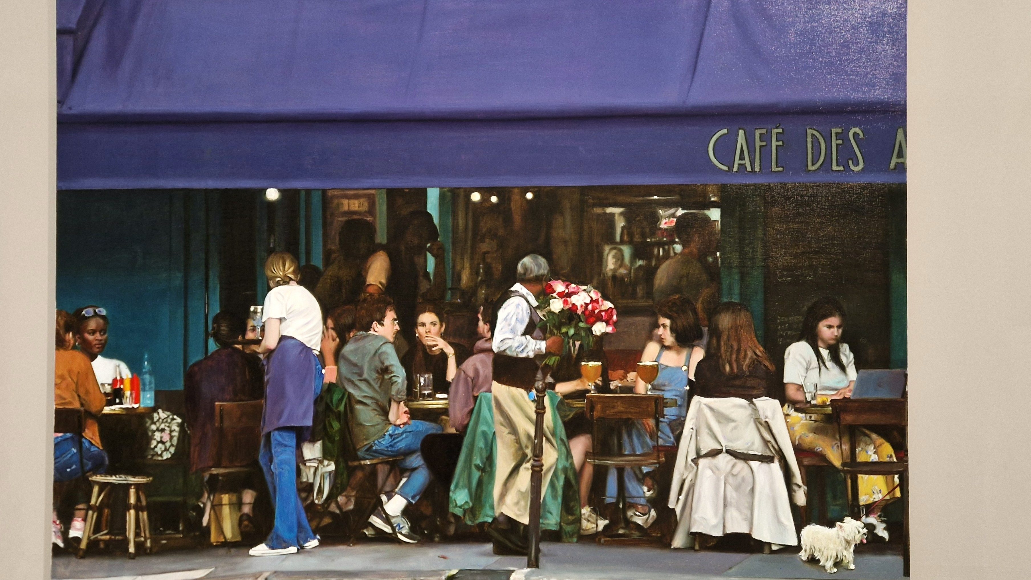 To construct these immersive scenes, Hamdad walks the streets of Paris, capturing moments from everyday life through photography. Back in his studio, he reconstructs these environments, translating them into paintings with remarkable attention to detail. Large formats enhance the immersive effect, while meticulous work on lighting, particularly reflections, reinforces the sense of realism and presence.