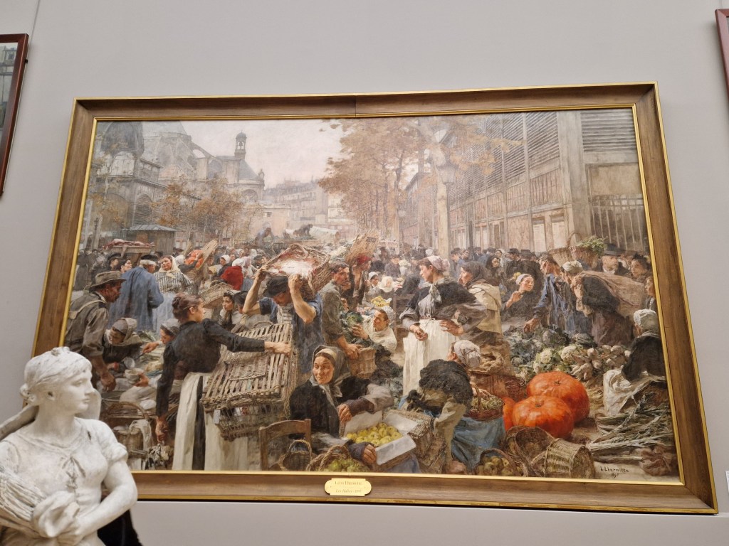 What makes this exhibition particularly compelling is its absence of a dedicated exhibition space. As per the spirit of this annual initiative, Hamdad’s works are dispersed throughout the Petit Palais, encouraging visitors to wander through the permanent collection and encounter his paintings unexpectedly. This curatorial choice generates a genuine dialogue between past and present, most clearly illustrated by Paname, a large-scale work commissioned specifically for the exhibition. Depicting a crowded Parisian street scene (“Paname” being a colloquial term for Paris), the painting was inspired by Léon Lhermitte’s Les Halles (1895), displayed in the same room. Lhermitte’s monumental canvas portrays the bustling market that once occupied what is now the Les Halles commercial centre, creating a striking parallel between two eras of urban life.